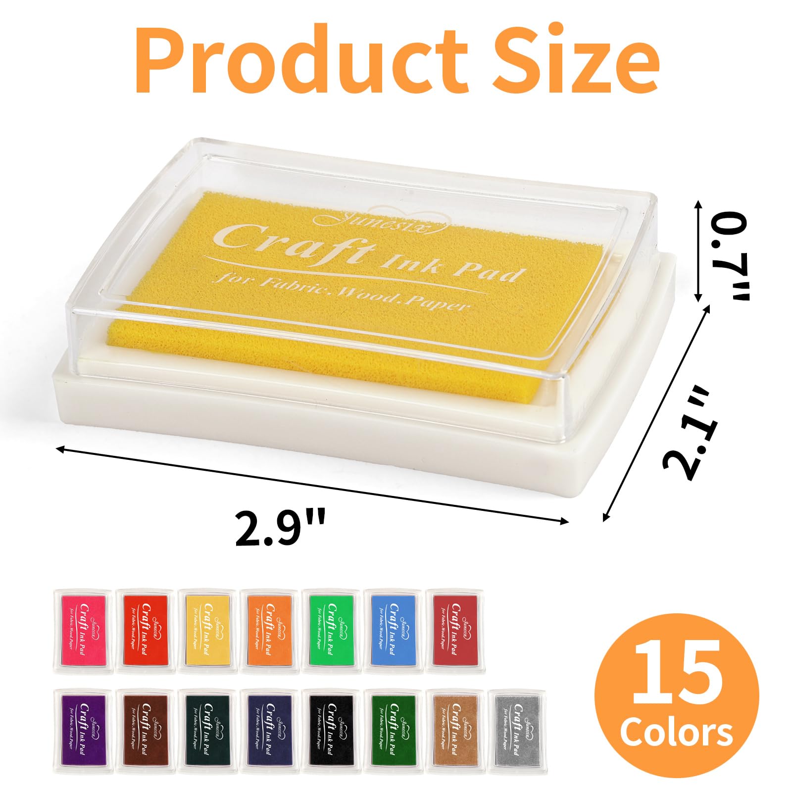 15 Colors: Includes 15 vibrant ink pads (2.9" x 2.1" x 0.7"), each in a plastic box for tidy storage and portability, preventing smudging and colors mixing