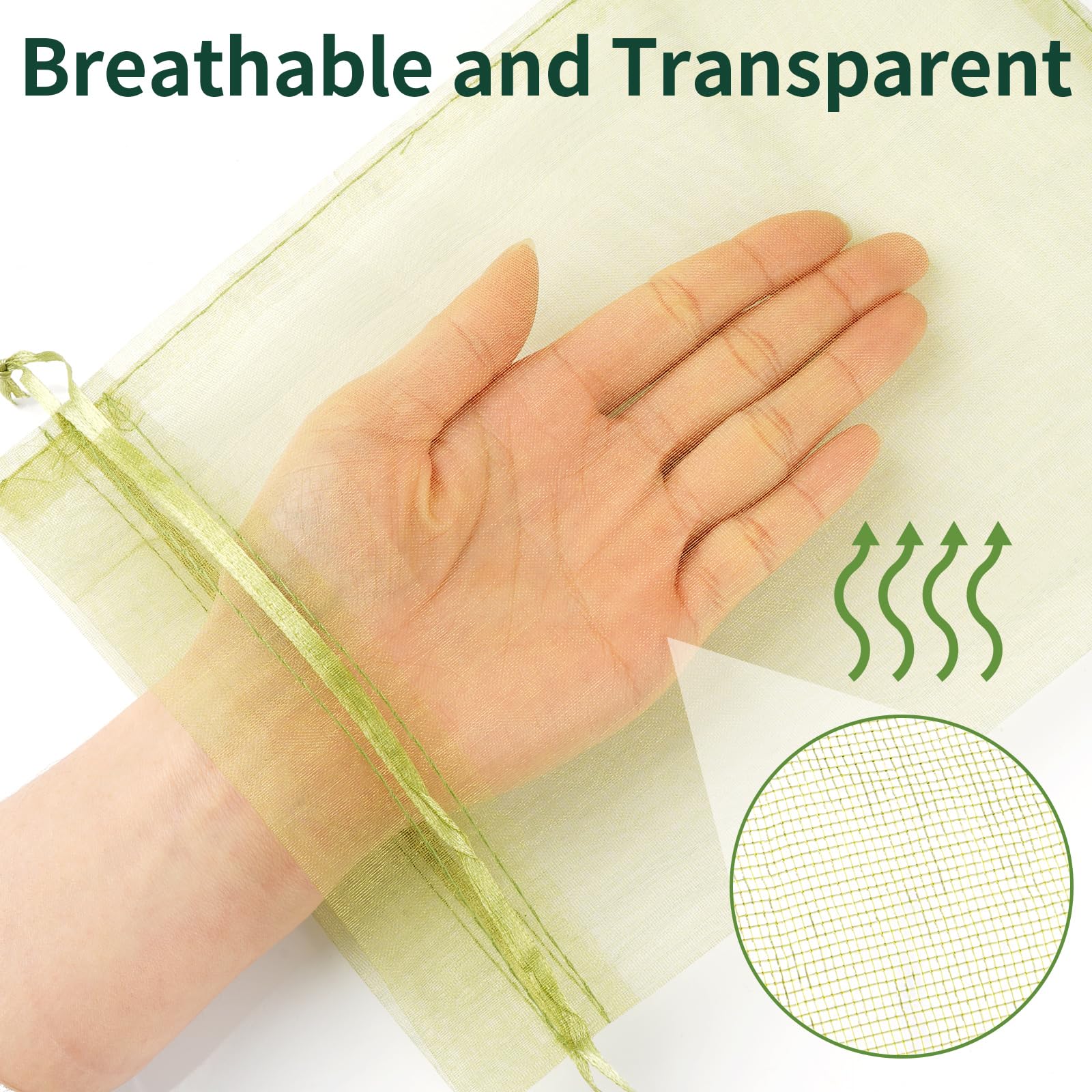 Breathable and Transparent: The see-through mesh allows sunlight and air to pass, ensures no moisture buildup and fruits grow healthily; lightweight and soft without adding weight and damage to tiny branches